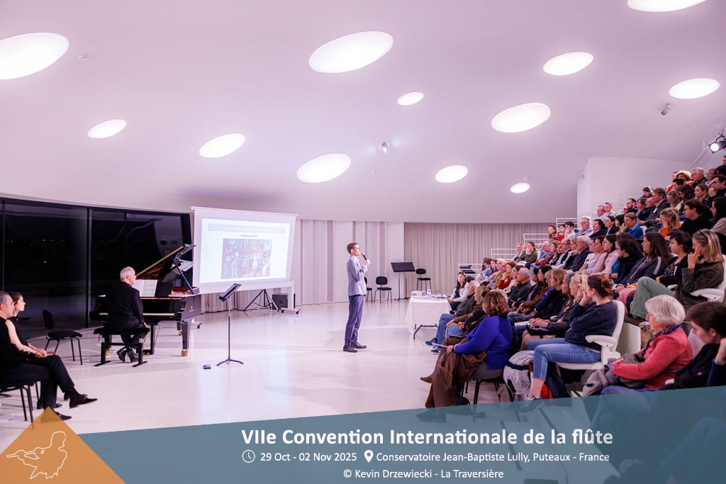 La 7ᵉ édition de la Convention de la flûte s’est déroulée du 29 octobre au 2 novembre 2025 au Conservatoire de Puteaux, un lieu particulièrement adapté à ce type de manifestation. Les participants ont pu profiter de ses nombreux espaces :un auditorium de 600 places, une salle de récital et plusieurs salles dédiées à la musique de chambre.