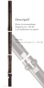 Le modèle de traverso que nous proposons a fait l’objet d’un choix évident avec les musiciens et professeurs avec qui nous travaillons, il est réalisé d’après G.A. Rottenburg et bénéficie d’une embouchure inspirée du facteur Delusse d’après un exemplaire restauré à l’atelier il y a quelques années.